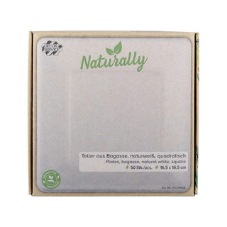 Teller aus Bagasse, naturweiß, quadratisch 16.5cm, 50Stk.