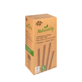 Trinkhalme aus Papier dick braun natur Ø8mm 25cm, 150 Stk.