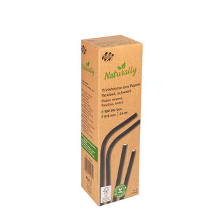 Trinkhalme aus Papier flexibel schwarz Ø6mm, 24cm, 100 Stk.