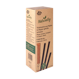 Trinkhalme aus Papier schwarz einzeln gehüllt Ø6mm 21cm, 100 Stk.
